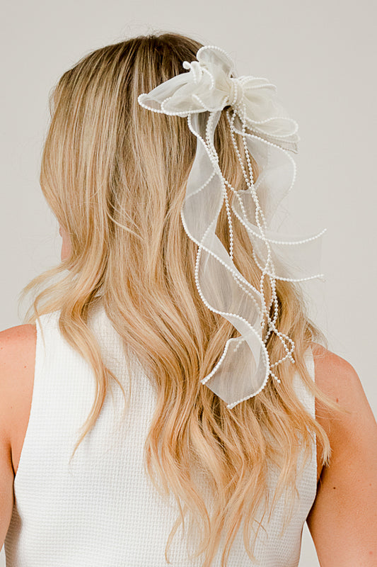 Bow with Pearls Hair Tie